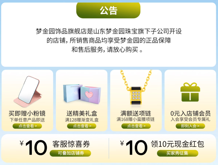 据天猫电商平台信息,截至查询日2024年10月23日,“梦金园饰品旗舰店”的认证企业为梦金园的控股子公司深圳梦金园电子商务有限公司(以下简称“深圳电商”)。“梦金园旗舰店”的认证企业为梦金园的深圳电商的全资子公司拉萨金千汇科技有限公司。