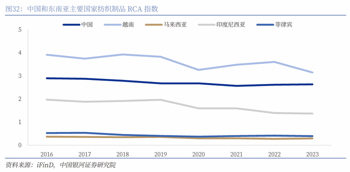 比较优势仍存,订单回流助力纺织品对美出口强势恢复。显性比较优势(RCA)指数常用来衡量出口产品的比较优势,某种产品的RCA指数=(该产品出口额/全球该产品出口额)/(国内总出口额/全球所有产品出口额),一般认为,若RCA>2.5,则表明该国某类产品具有极强的竞争力。通过计算我国纺织制品的RCA指数,可以看到其持续保持在2.5以上的水平,同时相较于其他具备较多廉价劳动力资源的东南亚国家也存在较为明显的优势,在此基础上,2020年7-8月,东盟主要服装生产国大量工厂因抗疫措施被迫关停,特别是越南南部和柬埔寨金边周围工厂,于2020年7月中旬被强制停工;在此情形下,欧盟、美国主要品牌客户将订单陆续迁出并回流至国内企业,国内纺织服装对美出口随之回暖。