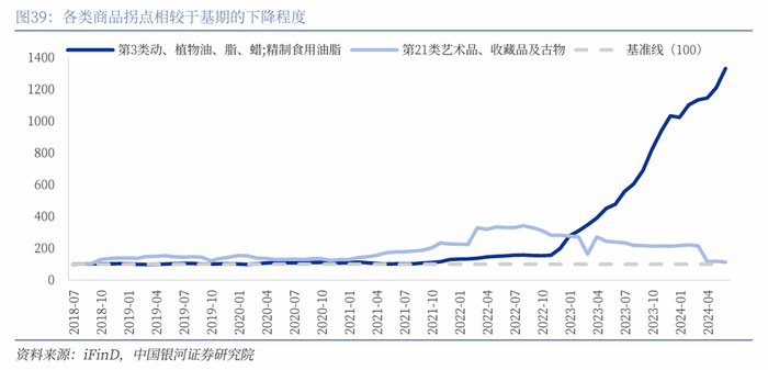 (3)几乎未受到关税影响的商品:第3类(动植物油脂类商品)和21类(艺术品、收藏品及古物)。第3类快速增长是由于政策刺激和需求转移带动的,第21类商品关税覆盖率较低,受关税影响较小。