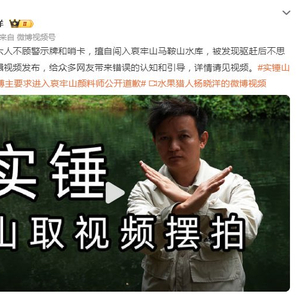 近日,博主@水果猎人杨晓洋发视频称,颜料师“山取”团队一行六人不顾警示牌和哨卡,擅自闯入哀牢山马鞍山水库,被发现驱赶后不思悔改,依然剪辑视频发布,给众多网友带来错误的认知和引导,并质疑山取团队视频摆拍。