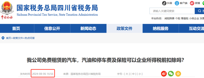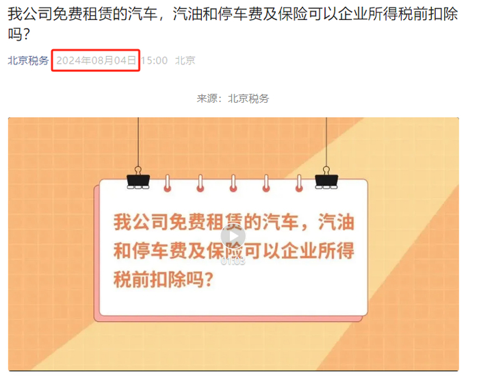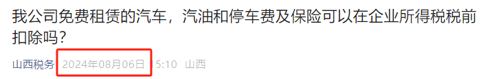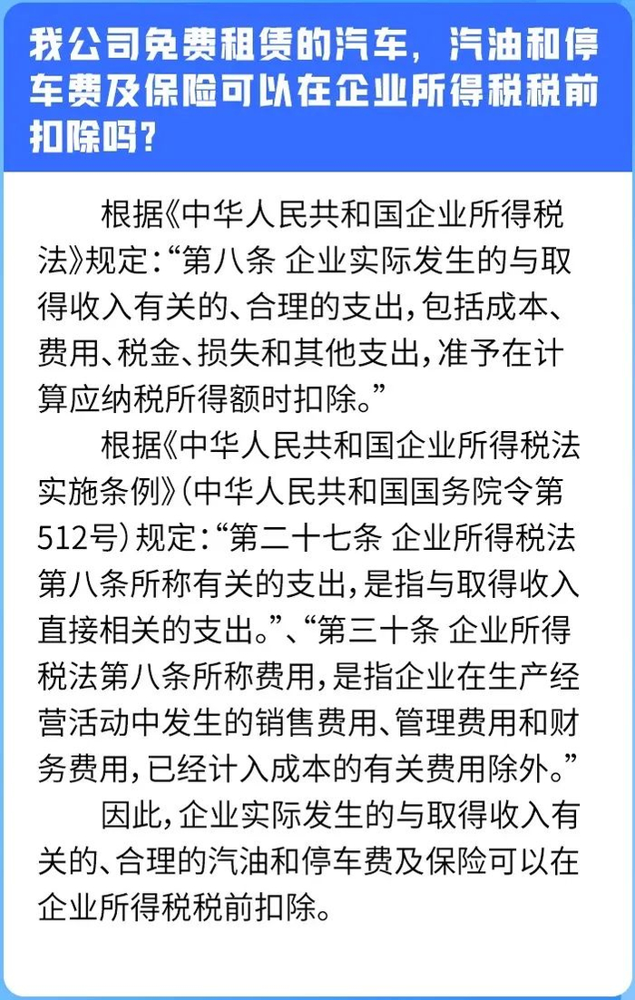 问:我公司免费租赁的汽车,汽油和停车费及保险可以企业所得税前扣除吗?