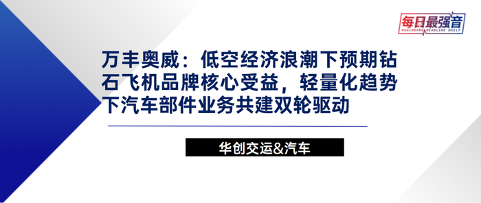 1)万丰奥威是以“大交通领域先进制造业”为核心的国际化公司,通过不断收购形成了汽车金属部件轻量化产业(铝合金-镁合金为主线)与通航飞机创新制造产业“双引擎”驱动发展格局。