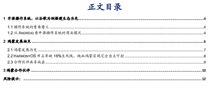 本报告摘自华安证券2024年10月17日已发布的《【华安证券·计算机】行业专题:计算机主题巡礼——鸿蒙》,具体分析内容请详见报告。若因对报告的摘编等产生歧义,应以报告发布当日的完整内容为准。