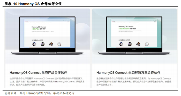 当前华为 HarmonyOS 的合作伙伴包括 HarmonyOS Connect 生态硬件合作伙伴、HarmonyOS Connect 生态解决方案合作伙伴。