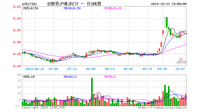 10月23日创新药沪港深ETF(517380)份额减少400.00万份,最新份额4.50亿份,最新规模2.47亿元