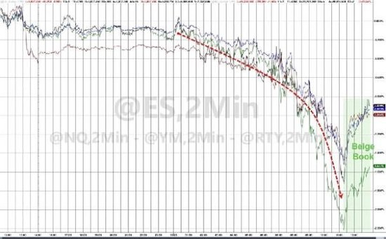 尽管盘中美联储经济状况“褐皮书”小幅放鸽显示,美国经济仍在继续放缓,通胀水平继续温和,令美股小幅回升,但难以拯救美股颓势,纳指一度跌逾2%领跌。