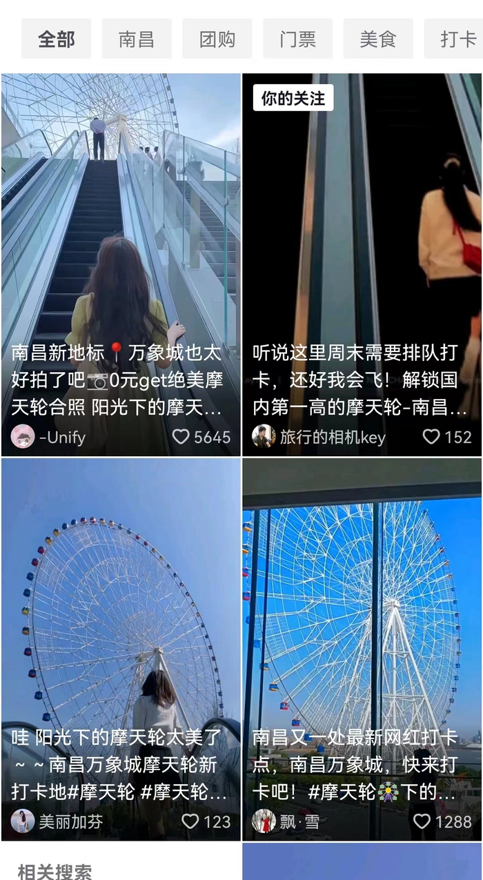 “南昌万象城这台电梯人气之高令人惊讶,站在自动扶梯上缓缓向上,摩天轮渐渐出现在你眼前,太出片了!”“电梯位置独特,与摩天轮对望,随着电梯缓缓上升,摩天轮在眼前慢慢浮现,这个视角的摩天轮浪漫极了。”……自2022年10月开业以来,南昌万象城人气一直居高不下,成为网红打卡点的望星广场和自动扶梯打卡人数日均超3万,相关的短视频也火爆小红书、抖音等平台。