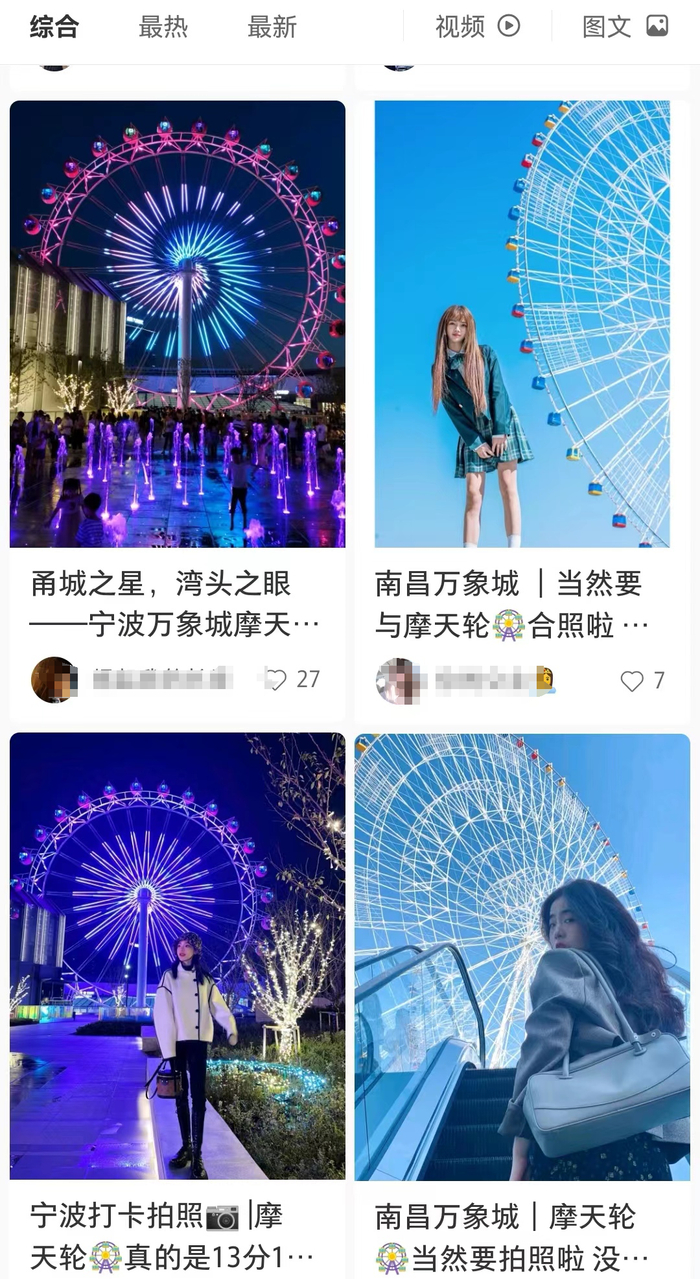 在小红书上,搜索南昌之星摩天轮拍照位置,有4万多篇笔记,全是网友分享的打卡心得。尤其是南昌万象城2号门前的自动扶梯,成为网友推荐的最佳拍照点。