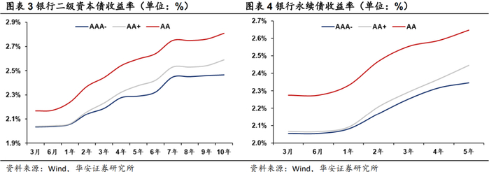 分流动性,对于银行二级债,AAA-/AA+周度换手率为3.12%、4.85%;对于银行永续债,AAA-/AA+周度换手率为4.51%、4.91%。