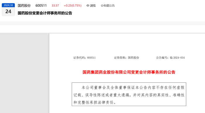 公司第八届董事会第十九次会议以 10 票同意、0 票反对、0票弃权的结果审议通过了《国药股份关于变更 2024 年度会计师事务所的议案》。