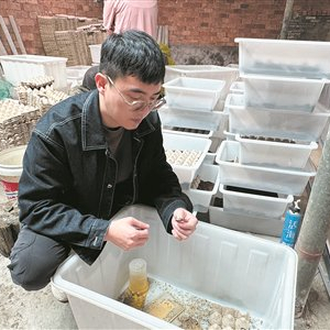 翁龙江笑着说:“蟋蟀能全年养殖,100平方米以内的养殖场地投入四五万元,四五个月就能回本,养起来也省心,一天喂食一到两次,定时打扫,一个人就能搞定。很多邻居听说了,都想跟着我养蟋蟀。”