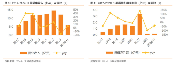 随着市场环境改善、新产能投产等因素的作用,公司2024年上半年表现复苏,营业收入为6.08亿元(yoy+4.40%),归母净利润为0.19亿元(yoy-38.61%)。未来在海外市场拓展、国内市场需求增加以及中间体、原料药、制剂一体化业务的加速布局等因素的推动下,公司有望实现营收持续增长和利润回升。