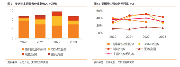 院外市场开拓卓有成效。近年来公司大力开拓制剂业务,通过集采中选产品为契机,拓展等级医院市场的基础上,积极探索大流通等销售新模式,同步拓展基层、OTC和第三终端市场,奠定坚实的渠道基础。2022年,公司成立宁波美诺华医药销售有限公司,2023年11 月收购了少数股东股份,同时积极布局批发电商和零售电商业务,助力自营品种、商业品种以及外部代理品种的销售增长。