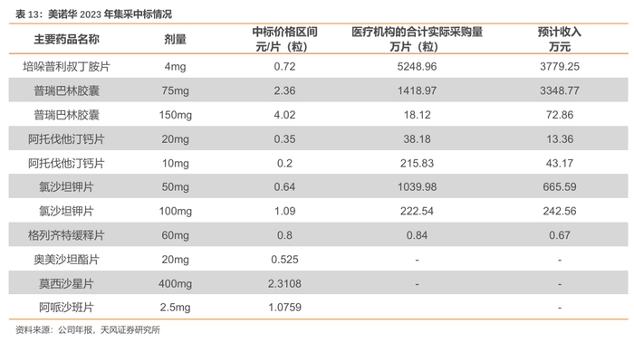 集采中标、续标成果显著,集采中标方面,2023年公司完成培哚普利叔丁胺片长三角(沪浙皖)联盟地区、福建、川藏联盟续标,氯沙坦钾片河南省两个规格续标。奥美沙坦酯片、莫西沙星片、阿哌沙班片在十三省联盟(区、兵团)药品联盟采购中中标。在带量采购政策下,药品的集采中标促进公司制剂品种市场占有率及品牌影响力提升,促进公司制剂业务快速发展。
