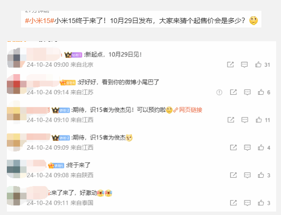 10月24日,话题#小米15#冲上热搜。