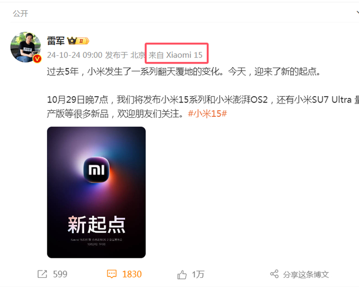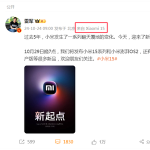 热搜!雷军官宣:10月29日发布!小米15、小米汽车最新消息