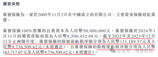 2024年3月,九方智投通过通过间接全资附属公司斥资5200万元收购了启见科技持有的广发保险股权。而广发保险2024年1月底的总资产仅为850万元。