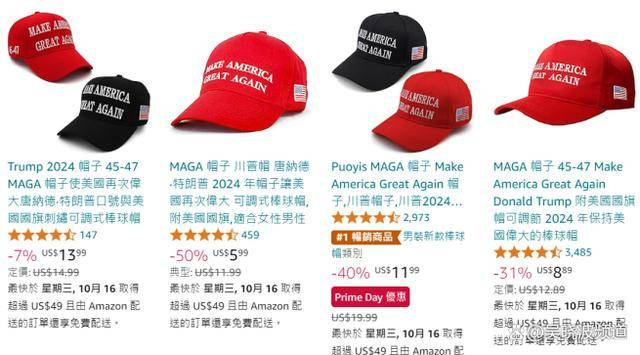 印有特朗普经典口号的“MAGA”棒球帽,一向是美国大选中的明星产品。