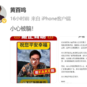 黄百鸣在发布相关视频截图的时候,配上了“FAKE假”的标签,并发文提醒观众:小心诈骗。