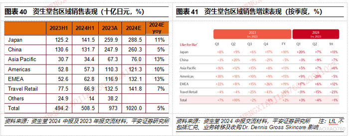 4.1 2024H1销售:日本、EMEA和亚太(除日本和中国)增长强劲,旅游零售、中国市场表现不佳