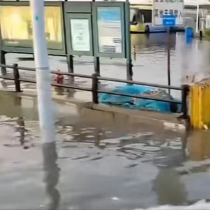 天津滨海新区某公交站海水倒灌 网络视频截图