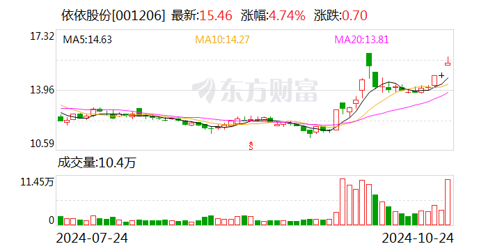 依依股份:2024年三季报净利润为1.51亿元、每股收益增加0.34元