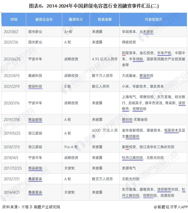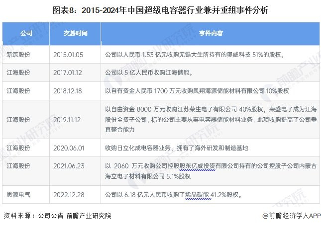 【投资视角】启示2024:中国超级电容器行业投融资及兼并重组分析(附投融资汇总、兼并重组事件等)