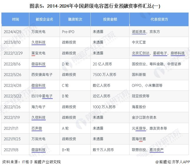 本文核心数据:超级电容器行业投融资动向;超级电容器行业融资金额