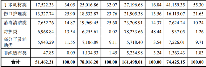 发行人是一家主要从事医用敷料等一次性医疗器械及消毒卫生用品研发、生产和销售的高新技术企业,公司产品根据使用用途分为手术耗材类、伤口护理类、消毒清洁类、防护类、高分子及辅助类和非织造布类六大系列,可以满足客户多元化产品需求。
