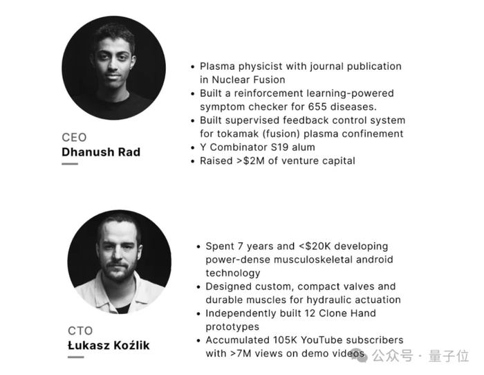 CTO Łukasz Koźlik,曾投入7年时间开发高功率密度的肌肉骨骼机器人技术(据说成本少于20,000美元),而且独立建造了12个Clone Hand原型。