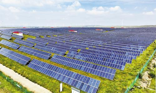 在位于张北县的国家风光储输示范工程现场,一排排太阳能光伏板熠熠生辉。