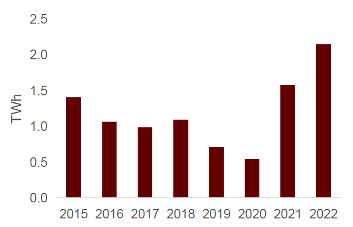 图表11:美国部分含加密货币挖矿设备的发电站年供电量