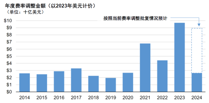 图表26:2014-2024E美国公用事业年度费率调整金额