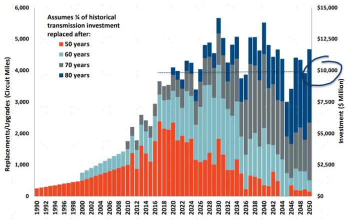 图表20:美国输电线路改造需求预测