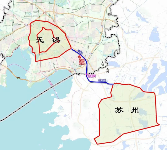 建成后,从无锡中环向东“丝滑”辐射,跨望虞河与苏州312国道衔接;苏州部分则通过太阳路一头连无锡312国道快速路,一头接苏州中环。