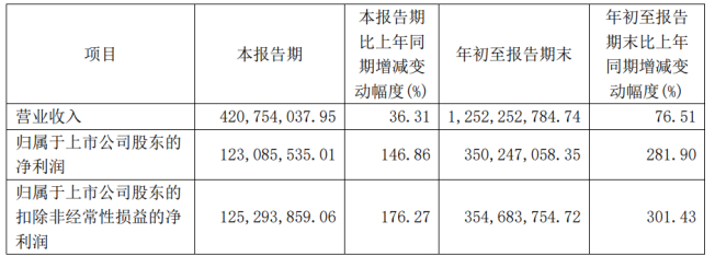 从业绩表现来看,诺泰生物近来确实取得了不俗的成绩。依据诺泰生物三季报显示,今年前三季度公司实现营业收入12.52亿元,同比增长76.51%,归属于上市公司股东的净利润为3.50亿元,同比增长281.9%。
