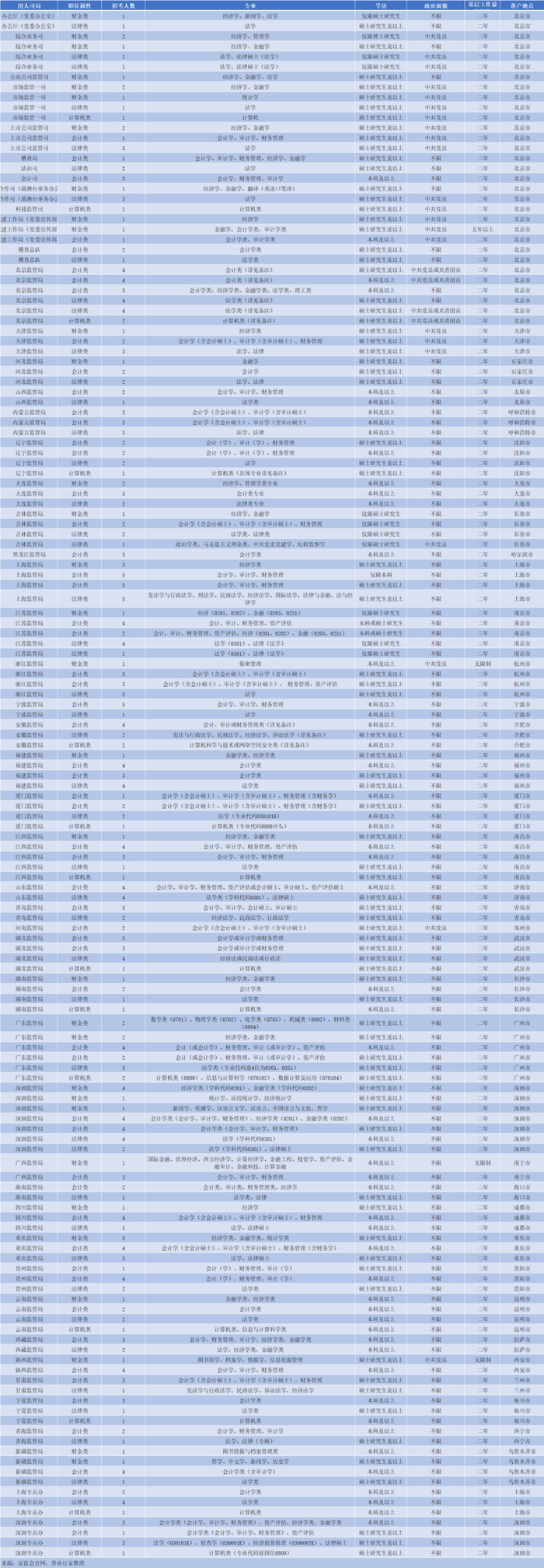 专业限定来看,48个岗位专业要求法律类,59个岗位要求会计类,47个岗位专业要求审计类,38个岗位要求财务管理,14个岗位要求计算机类。理工“天坑类”专业仅有1个岗位。不过,国考热门的中文(汉语言文学)也只有2个岗位,新闻学则是3个岗位。