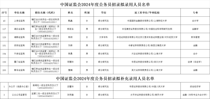 从招考结果来看,证监会官网先是公开列示了210名拟招录人员,后又补充招录了37名人员。