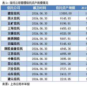 尽管当前国内经济金融环境复杂多变,叠加面临行业调整压力,但信托业积极响应国家宏观调控政策,紧密围绕服务实体经济的核心任务,不断优化资产结构,加强风险管理,推动业务转型创新,不少信托公司呈现出较强的发展韧性和活力。截至今年10月份,根据上市信托公司或股东为上市公司信息,我们获知14家信托公司最新管理信托资产规模情况。据统计,14家信托公司中,仅1家公司信托资产规模有所下滑,净增额度最大的三家公司分别为:建信信托(增加1291.64亿元)、上海信托(增加1219.20亿元)、昆仑信托(增加1214.62亿元),其他10家公司净增额度均在500亿元以上。
