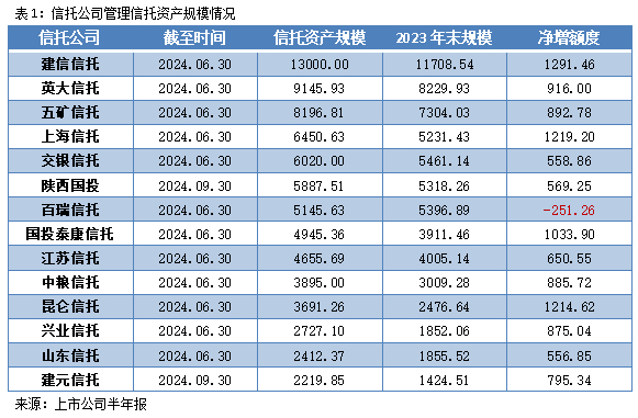14家信托公司最新信托资产规模情况