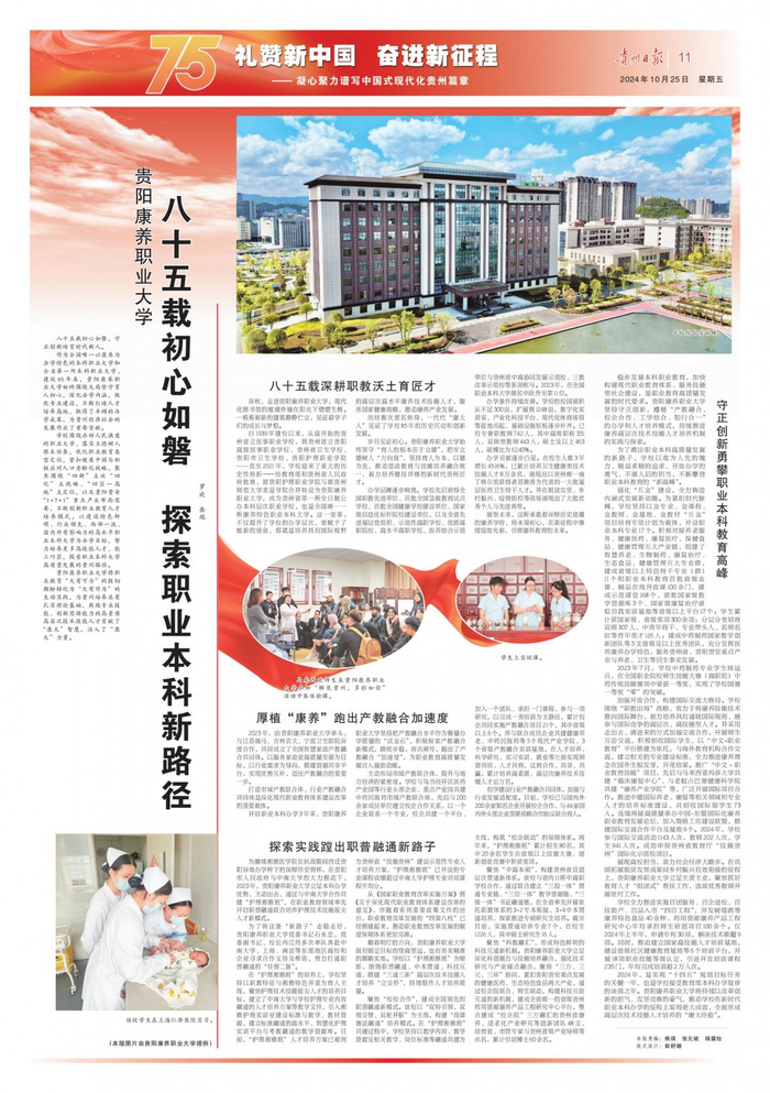 【贵州日报·教育】贵阳康养职业大学:八十五载初心如磐 探索职业本科新路径