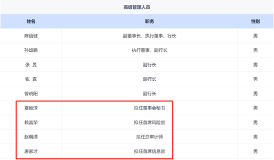 6月20日,兴业银行召开第十一届董事会第一次会议,续聘陈信健为行长,孙雄鹏、张旻、张霆、曾晓阳为副行长;续聘夏维淳为董事会秘书,聘任赖富荣为首席风险官,赵朝清为总审计师,唐家才为首席信息官,4人将在金融监管总局核准其任职资格后履职。