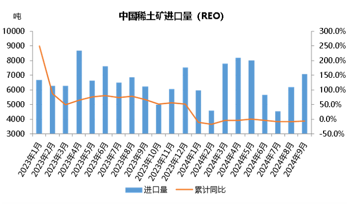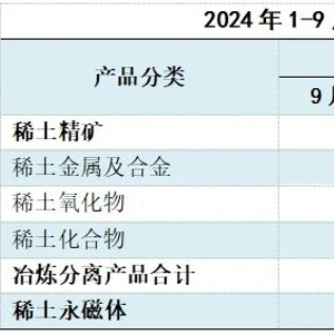 四、1-9月稀土冶炼分离产品进口量同比下降近27%
