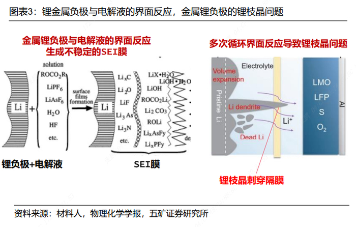 • 电解液对锂枝晶生长的低抑制能力限制了负极向锂金属(锂金属比容量远高于人造石墨)方向迭代。
