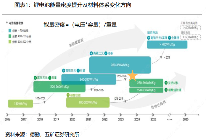 • 现有液态锂离子电池体系能量密度已经接近电池材料利用安全极限,接近300Wh/kg能量密度瓶颈。
