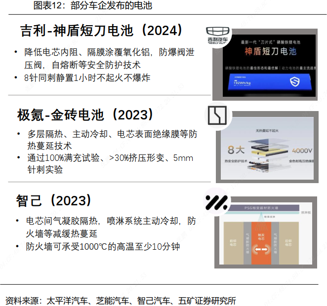 • 近年来,通过本征安全+主动被动的安全措施,液态电池在热蔓延(扩散)环节进步明显。