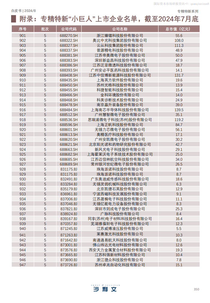 947家专精特新“小巨人”上市企业为制造强国补短板、强民生。随着中小市值企业市场热度不断攀升,"专精特新"迎来市场风口,“小巨人"企业成为资本市场重点关注的对象。截至到2024年7月,在五批次的“小巨人"企业中,共有468家上市企业,且前四批次的上市企业数量仍在不断增加。