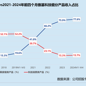 (注:2021-2024前四个月科技消费类产品收入占比为电动工具类、家用电器类和消费电子类收入占比之和)