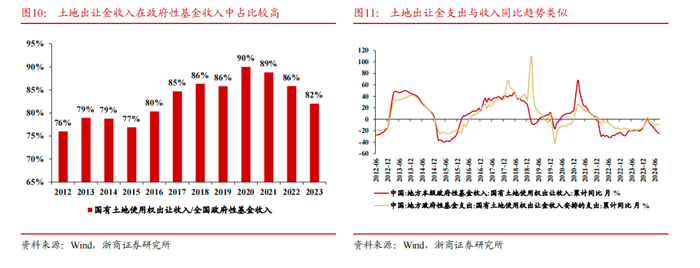 国有土地使用权出让收入占全国政府性基金收入比例曾经在2020年达到峰值超过90%,是财政第二本账中的重要收入来源。由于政府性基金预算实行“以收定支”的原则,因此支出规模需严格控制在收入范围内,土地出让金的支出同比趋势规模亦与收入同比趋势类似,对于土地出让金支出的判断可以参考卖地收入趋势。