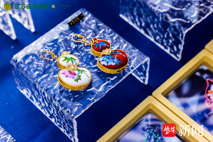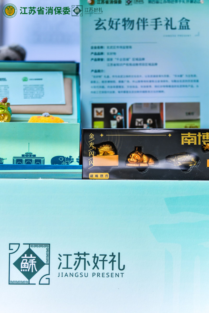 “淮安礼遇”礼盒内含西游文创酒、西游盲盒以及邮卡等产品。苏州的“五福·回香香囊式胸针”,袋中是多种药材泛制成丸,香囊外形是代表福泽绵延的金属南瓜。作为今年的“江苏好礼创新奖”,玄好物伴手礼盒以南京玄武湖波涛为灵感,南京博物院、德基广场、中山陵等地标建筑沿波涛排布,内含非遗瑰宝、文创佳品、科技新秀、网红好物等精选特色产品。